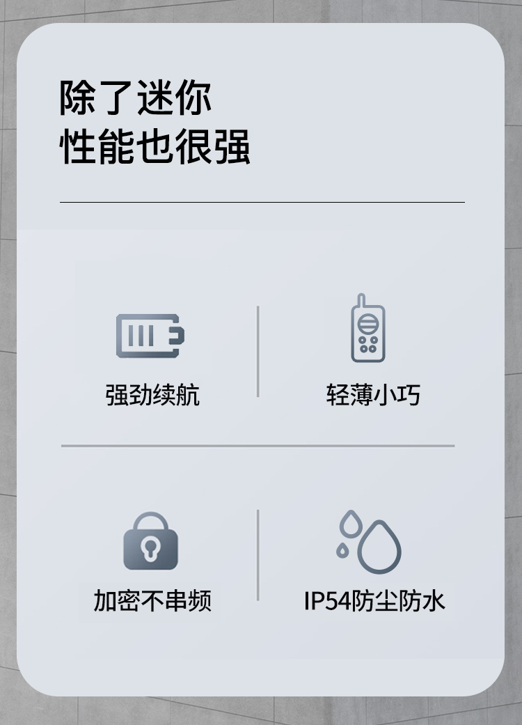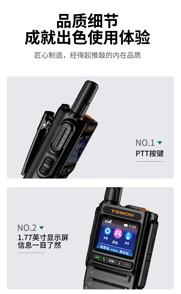 GP-575整机体积轻巧便携,方便随身携带使用;清晰的音质、无距离限制通信、单呼群呼等强大集群功能优势,使其被广泛应用于酒店、城管、机场、铁路、物业管理、物流、大型工业园区等行业;采用高集成的智能芯片平台,支持4GLTE,能够在主流运营商网络下流畅应用;小巧的机身同样蕴含专业的音腔设计,大功率扬声器配合优秀的音频软件腔体补偿技术,结合AI降噪技术,确保声音洪亮的同时最大程度地保真了用户话音。即使是在嘈杂的环境中,也能准确辨识及听清发起者的呼叫内容。