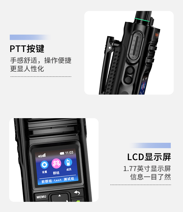 H78机身轻薄,携带方便;简洁的人机交互设计,1.77 英寸的LCD 屏幕和灵敏的按键操作,让专业客户能够迅速上手,熟练操作;高集成的智能芯片平台,支持4GLTE,突破距离限制,百公里即时对讲,持久待机续航;配合AI降噪与失真抑制技术,保障通话内容清晰完整;清晰的音质、无距离限制通信、单呼群呼等强大集群功能优势,非常适合酒店、城管、机场、铁路、物业管理、物流、大型工业园区等行业。