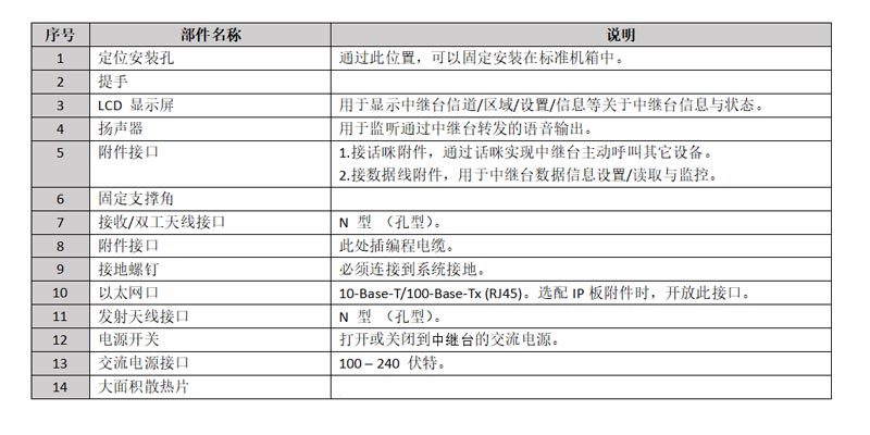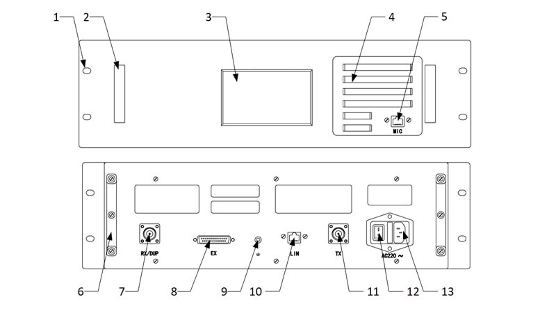 2U中继台设备主机采用数码管显示信道号码,六个指示灯分别显示数模通信类型,两个时隐的发射状态和接收状态,结构简单,体积小巧,适用于户外架设临时站点,或作为车载设备使用