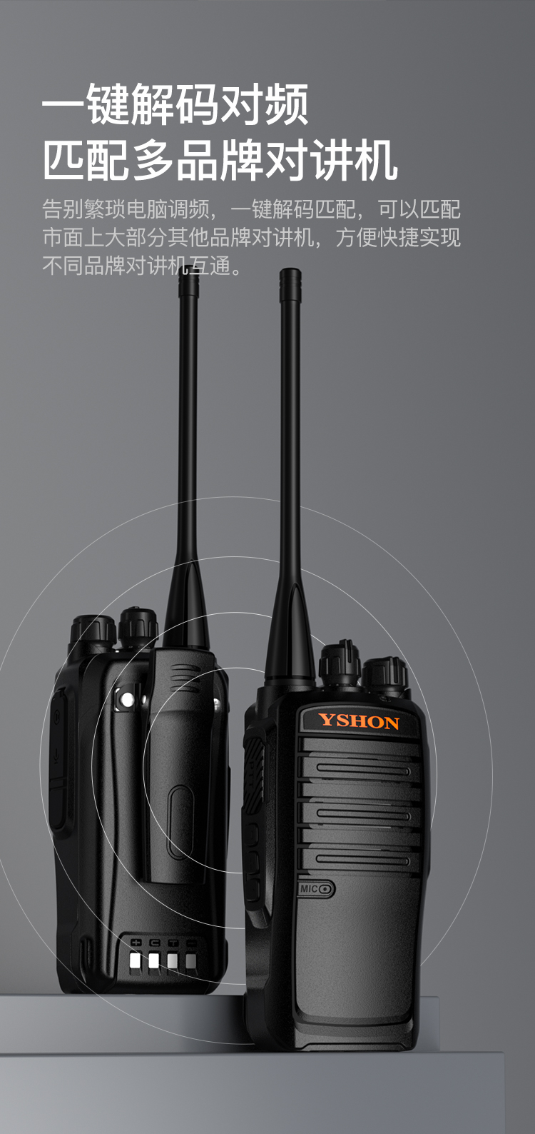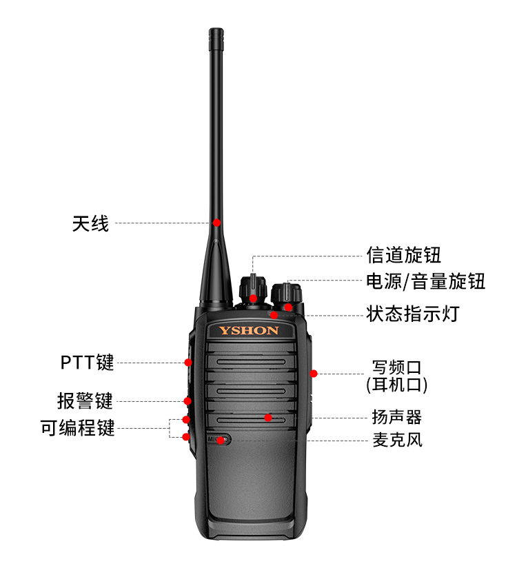 UT88整机造型比较硬朗,非常有质感,握持感很棒;机身采用ABS材质,耐摔防尘;可伸缩的高增益天线,能有效提高信号稳定性和穿透力,为用户提供良好的通信体验;一键解码对频,告别繁琐电脑调频操作,可匹配市面上大部分的品牌对讲机,快速实现不同品牌对讲机互通,拓展通信范围,为用户提供更大的灵活性和便利性。